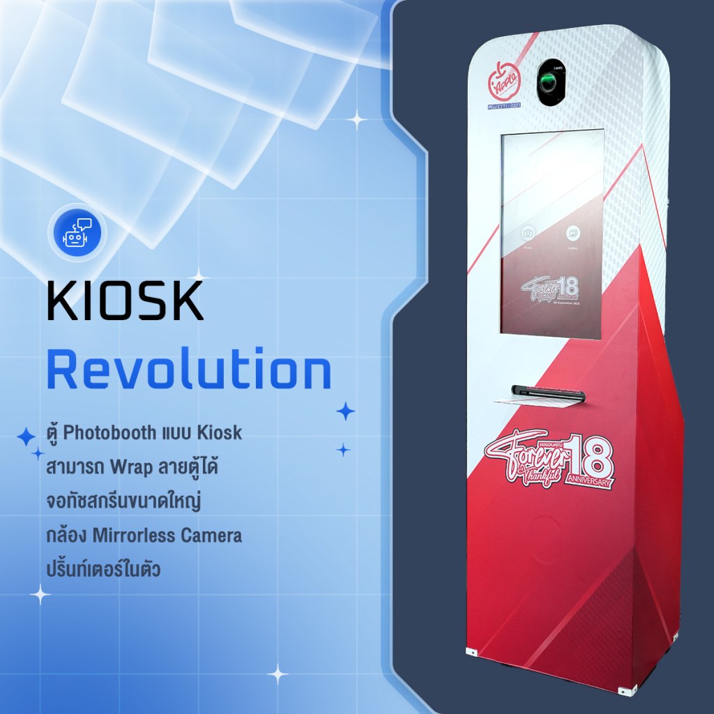 ตู้ Photo Booth แบบ Kiosk สามารถ Wrap ลายตู้ได้ มาพร้อมจอทัชสกรีนขนาดใหญ่ชัดเต็มตา ถ่ายภาพด้วยกล้อง Mirrorless และเครื่องปริ้นท์ในตัว