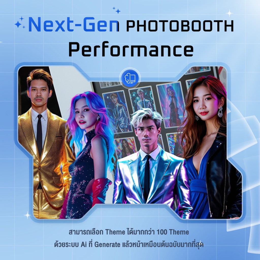 ล้ำไปอีกขั้นกับ AI Photo Booth บูธถ่ายรูปด้วยเทคโนโลยี AI สุดคูลกับธีมภาพหลากหลาย ปรับแต่งภาพด้วย AI generator เปลี่ยนใบหน้าของบุคคลในภาพถ่ายให้เป็นตัวละคร, ธีมต่างๆ, หรือแม้แต่ใบหน้าของคนดัง พร้อมการ ประมวลผลแบบคลาวด์จะชวยให้ได้ภาพที่รวดเร็วขึ้นพร้อมปริ้นท์ได้ทันที เพิ่มความแตกต่างและแปลกใหม่ให้กับงานอีเว้นท์ของคุณดูทันสมัยยิ่งขึ้น