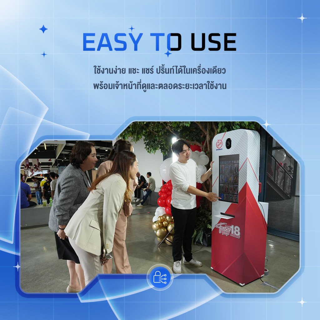 ด้วยรูปแบบ Kiosk ใช้งานง่าย แชะ แชร์ ปริ้นท์ได้ในเครื่องเดียว ใช้พื้นที่น้อยไม่ถึง 1 ตรม. พร้อมเจ้าหน้าที่ดูแลตลอดระยะเวลาใช้งาน