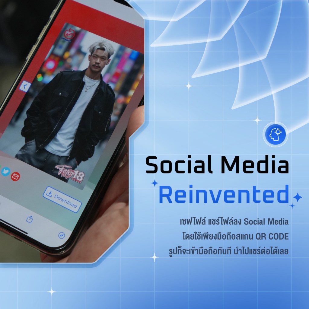 สามารถเซฟไฟล์ แช์ไฟล์ลง Soial Media ง่ายเพียงใช้มือถือสแกน QR CODE รูปของคุณก็เข้าอัลบั้มได้ทันที นำไปแช์ต่อได้เลย